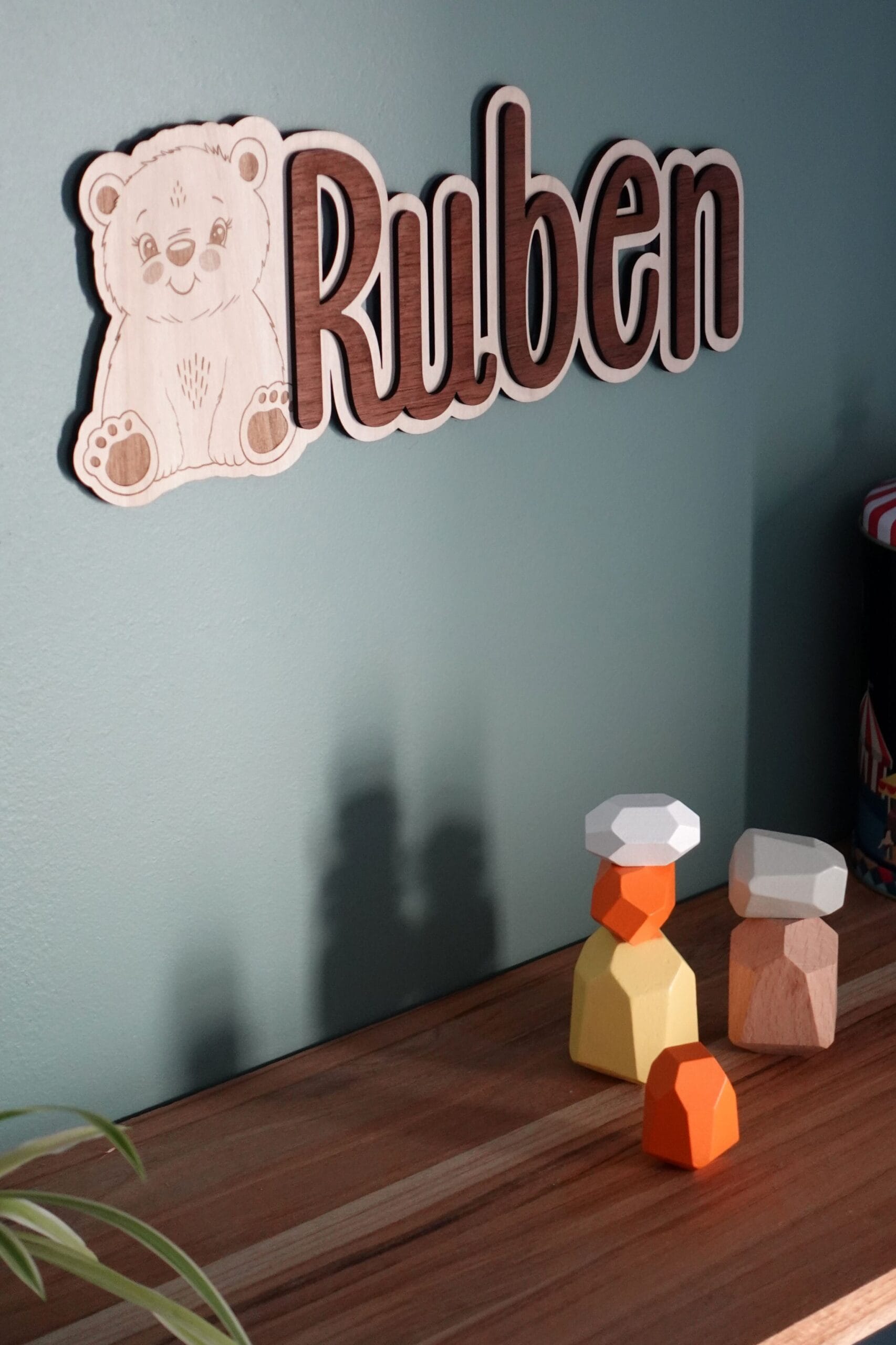 Vos créations sont des pièces artisanales délicates et non des jouets. Je vous recommande de les installer en hauteur, hors de portée des enfants, afin d’éviter tout risque de casse ou d’ingestion. Également, soyez vigilant lors de la manipulation de votre création. Accordez une attention particulière aux lettres en relief qui peuvent être fines et fragiles. Enfin, conservez votre création en intérieur, dans un endroit sec et à l’abri de l’humidité. Ainsi, évitez tout contact avec l’eau ou des produits abrasifs, qui risqueraient d’altérer la surface naturelle du bois.