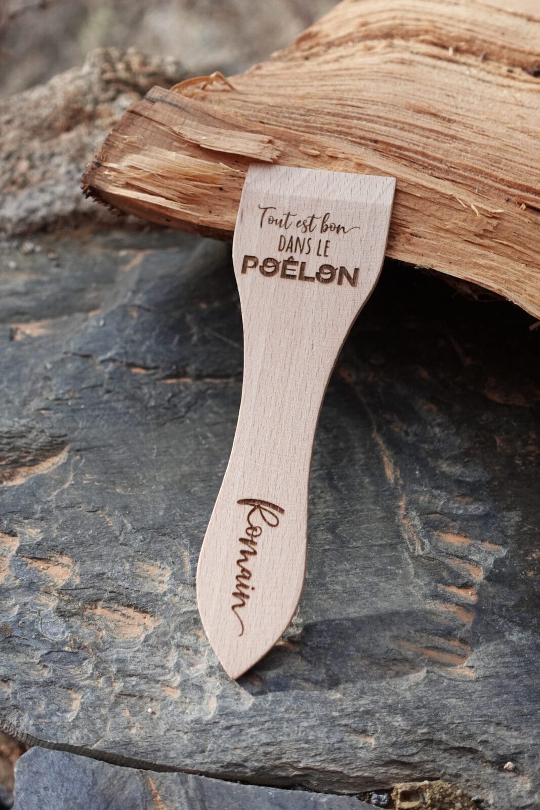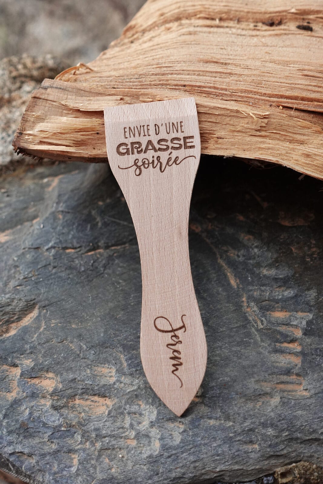 Vous souhaitez marquer les esprits ? Je vous propose de graver le message de votre choix sur chaque spatule. Ces spatules personnalisées constituent un cadeau original et attentionné pour vos proches. Afin que la gravure reste parfaitement lisible sur la largeur de la spatule (3,5 cm), je recommande un maximum de 35 caractères.