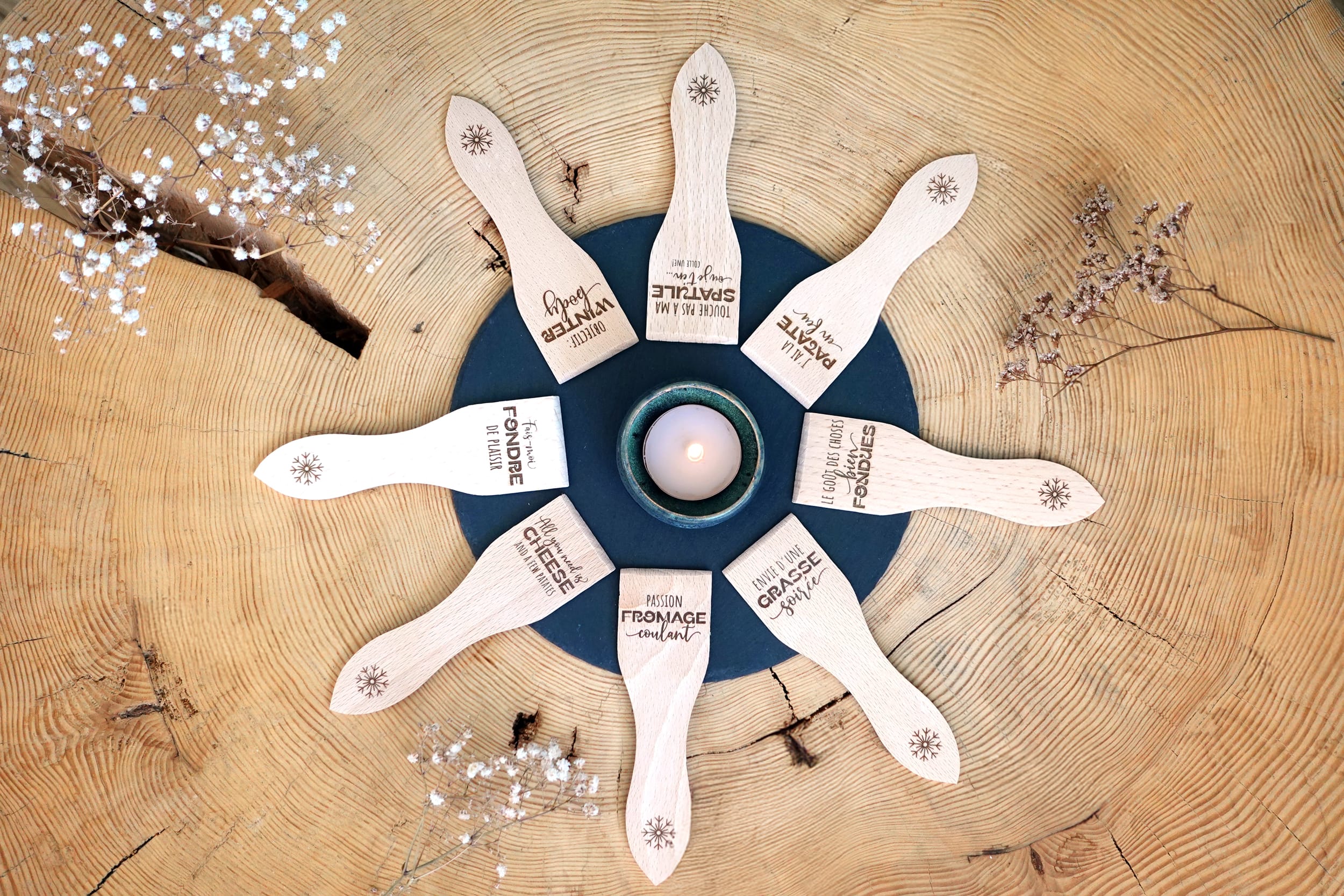 Quelques suggestions de textes pour des spatules à raclette 100% personnalisées: